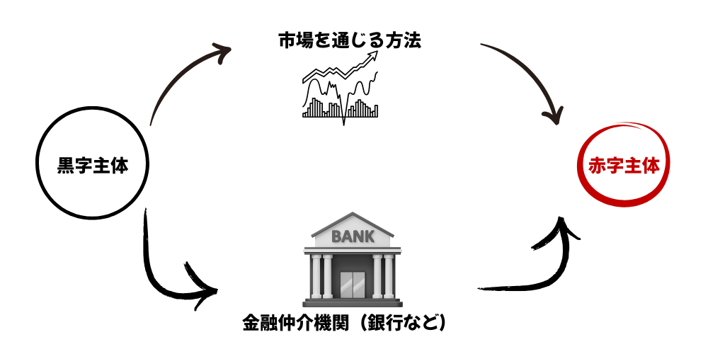 資金移転する手段としては「市場を通じる方法」と「金融仲介機関を介する方法」の二種類。