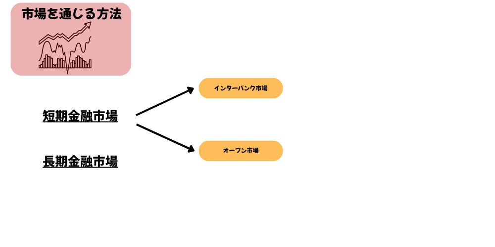 市場を通じる方法には「短期金融市場」と「長期金融市場」とがある。